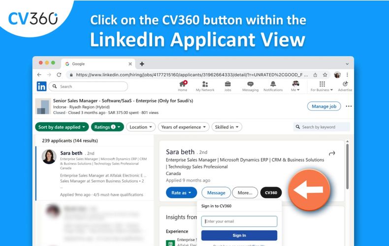 Access CV360 Report while reviewing applicant CVs in LinkedIn with our Chrome Extension.